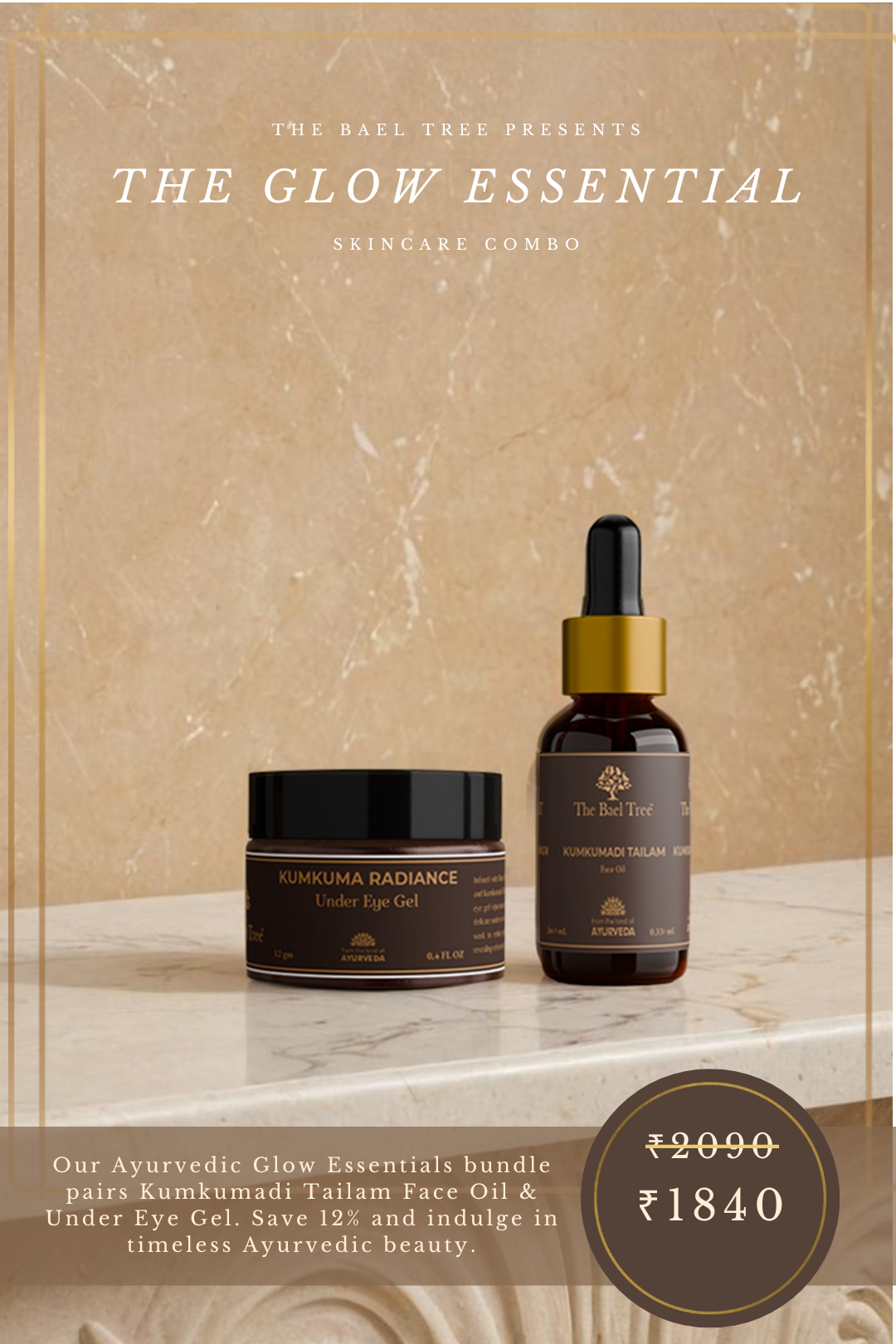 Targeted glow for your skin and eyes! Our Ayurvedic Glow Essentials bundle pairs Kumkumadi Tailam Face Oil & Under Eye Gel to deeply nourish, brighten, and reduce dark circles. Save 12% and indulge in timeless Ayurvedic beauty.